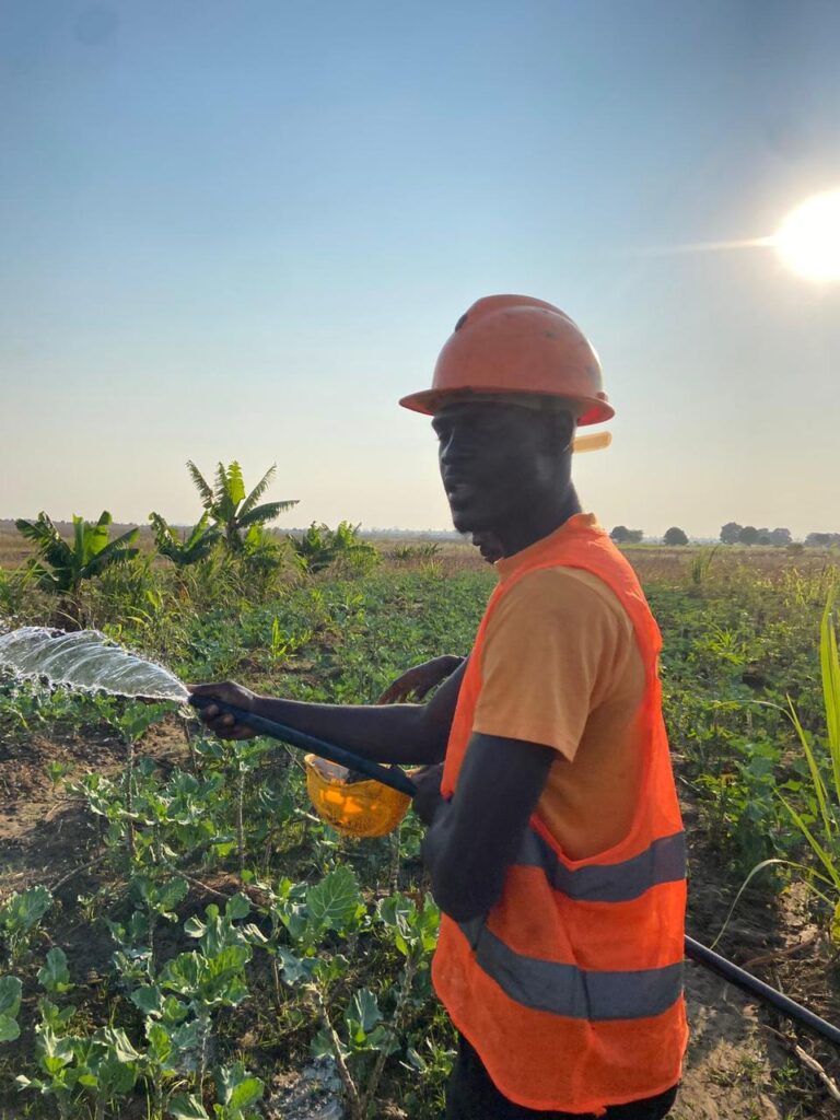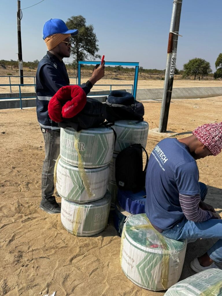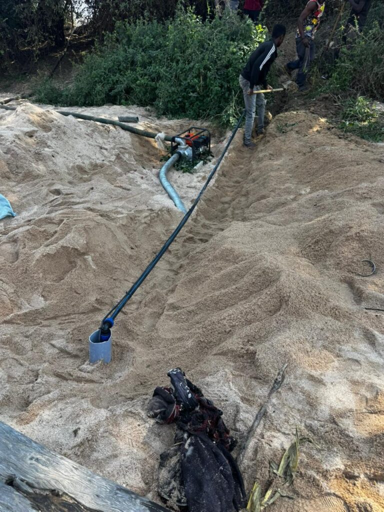 A colocação final das mangueiras de rega gota-a-gota está a ser articulada com a comunidade local, tendo em conta a limpeza e preparação do terreno. O sistema encontra-se pronto para operação assim que a etapa de campo estiver concluída.